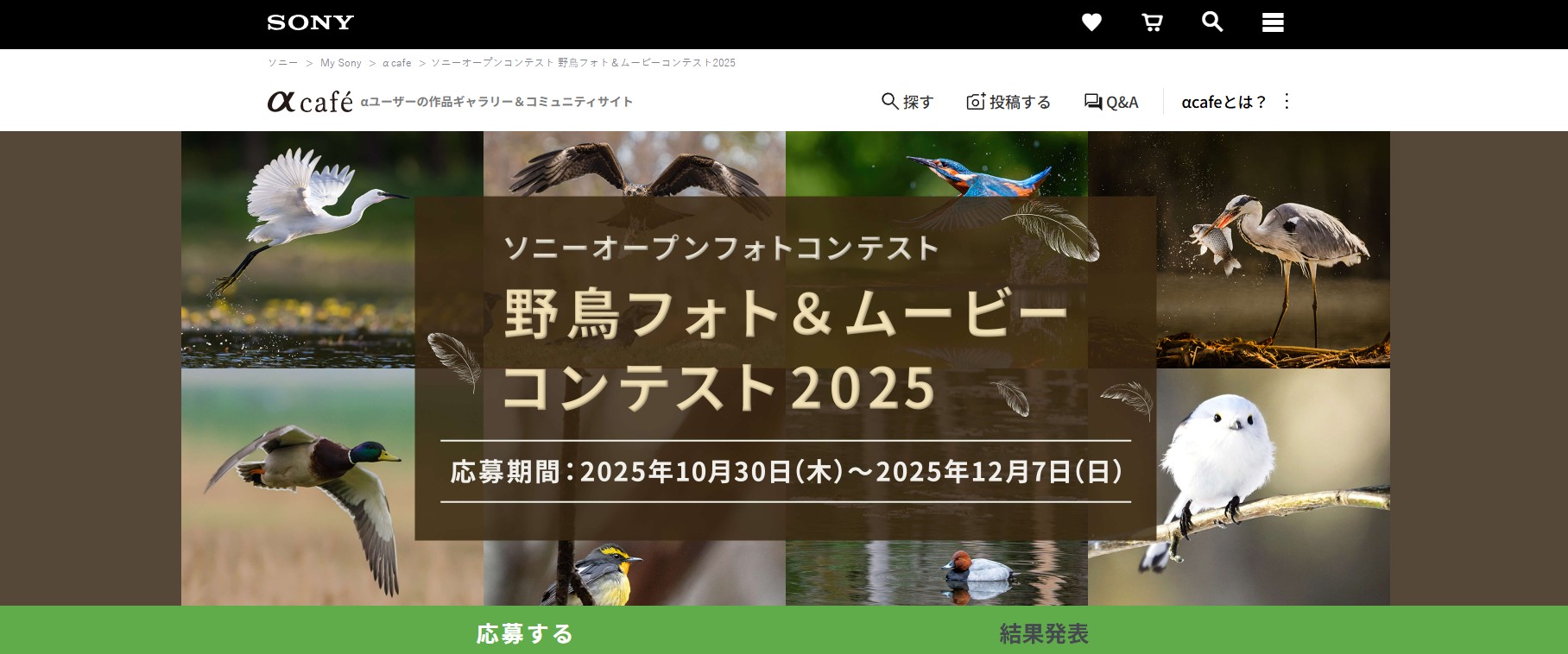 ※画像:公式サイトのキャプチャーソニーオープンコンテスト 野鳥フォト&ムービーコンテスト2025
