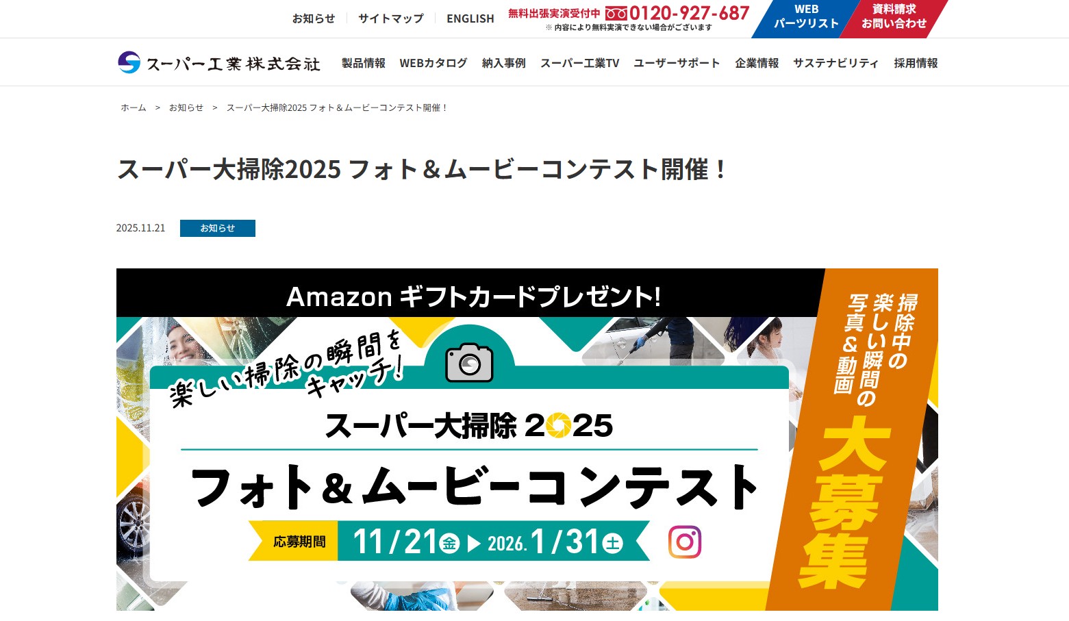 スーパー工業のお知らせスーパー大掃除2025 フォト&ムービーコンテスト開催!についてご紹介します。...