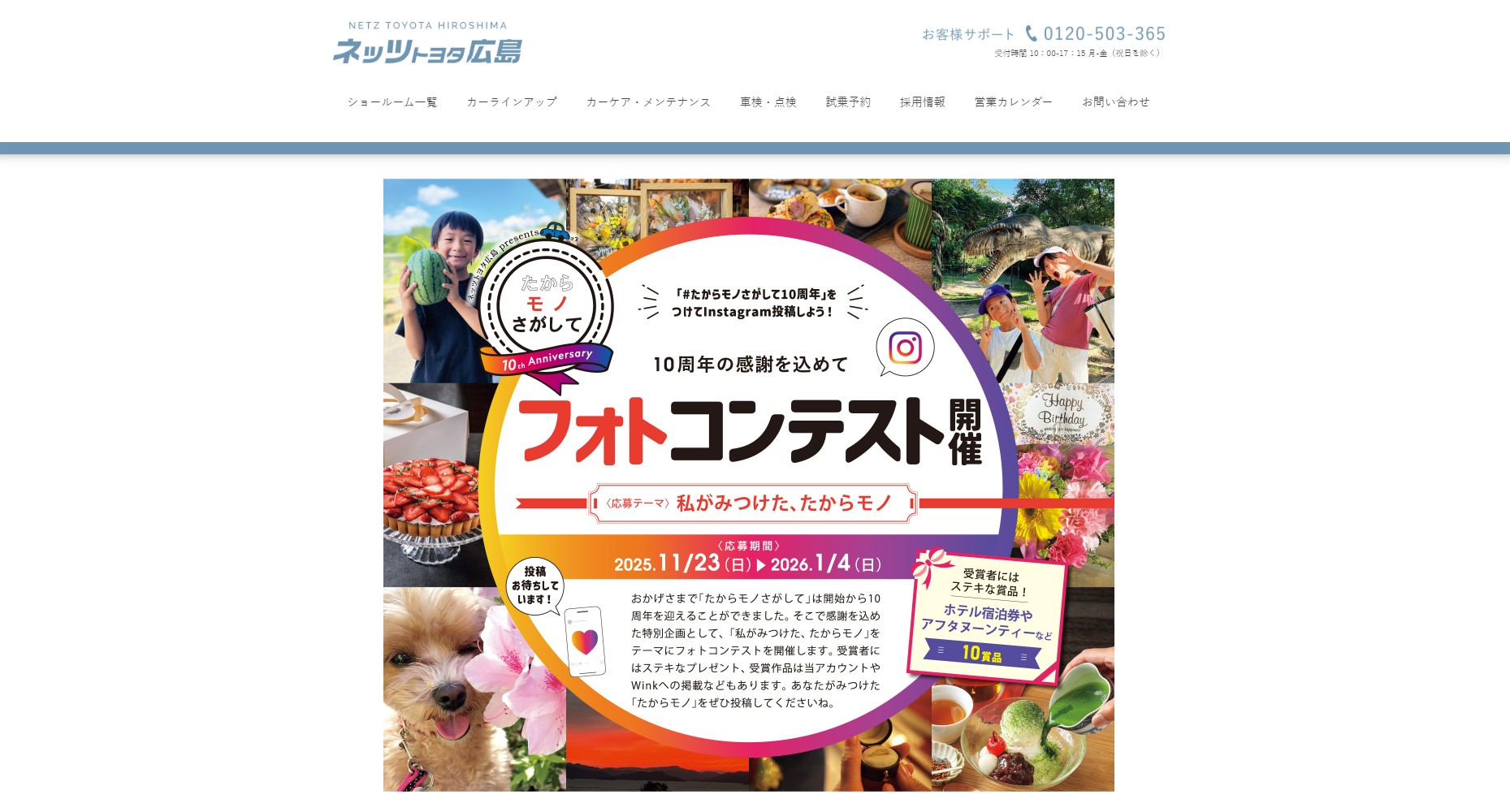 たからモノさがして10周年 フォトコンテスト 締切:2026年1月4日 主催:ネッツトヨタ広島