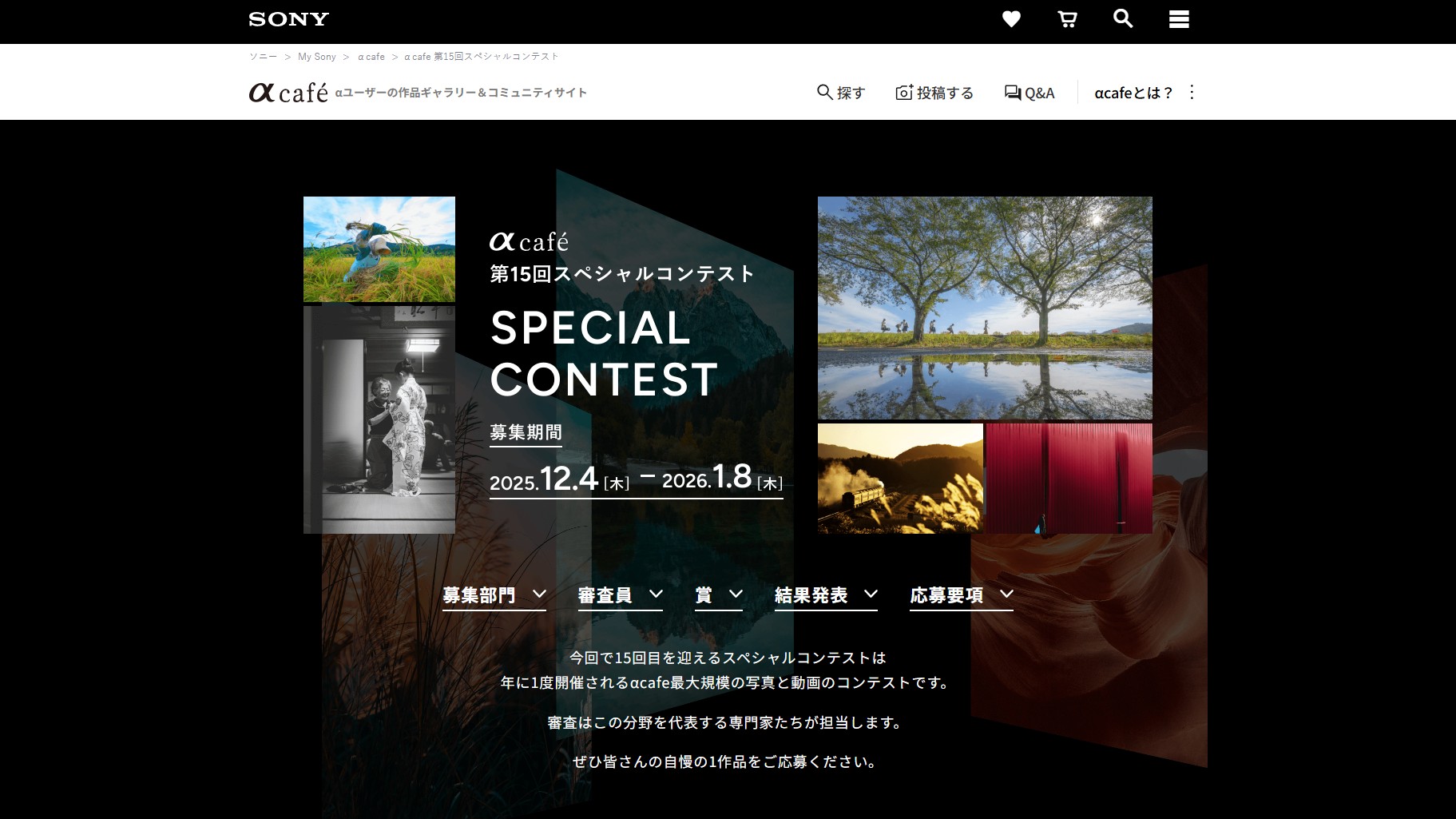 α部門(αcafe会員のみ。α、VLOGCAM、サイバーショット、FXシリーズで撮影した作品のみ応募可能)
