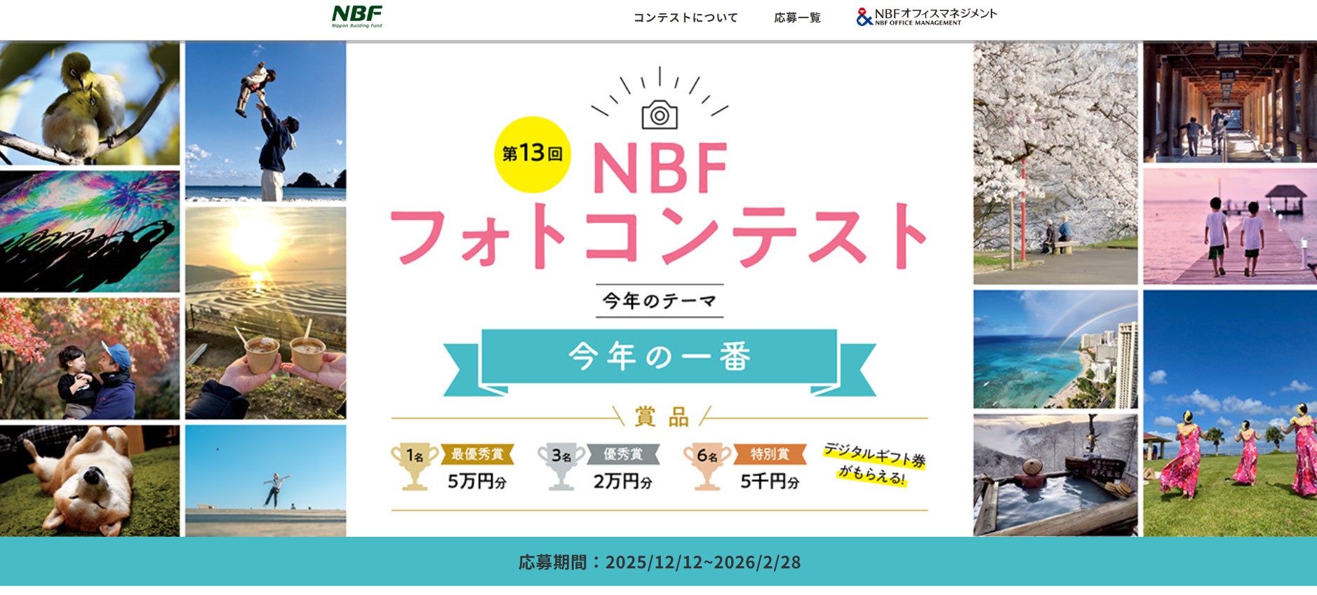 第13回 NBFフォトコンテスト 締切:2026年2月28日 主催:株式会社NBFオフィスマネジメント