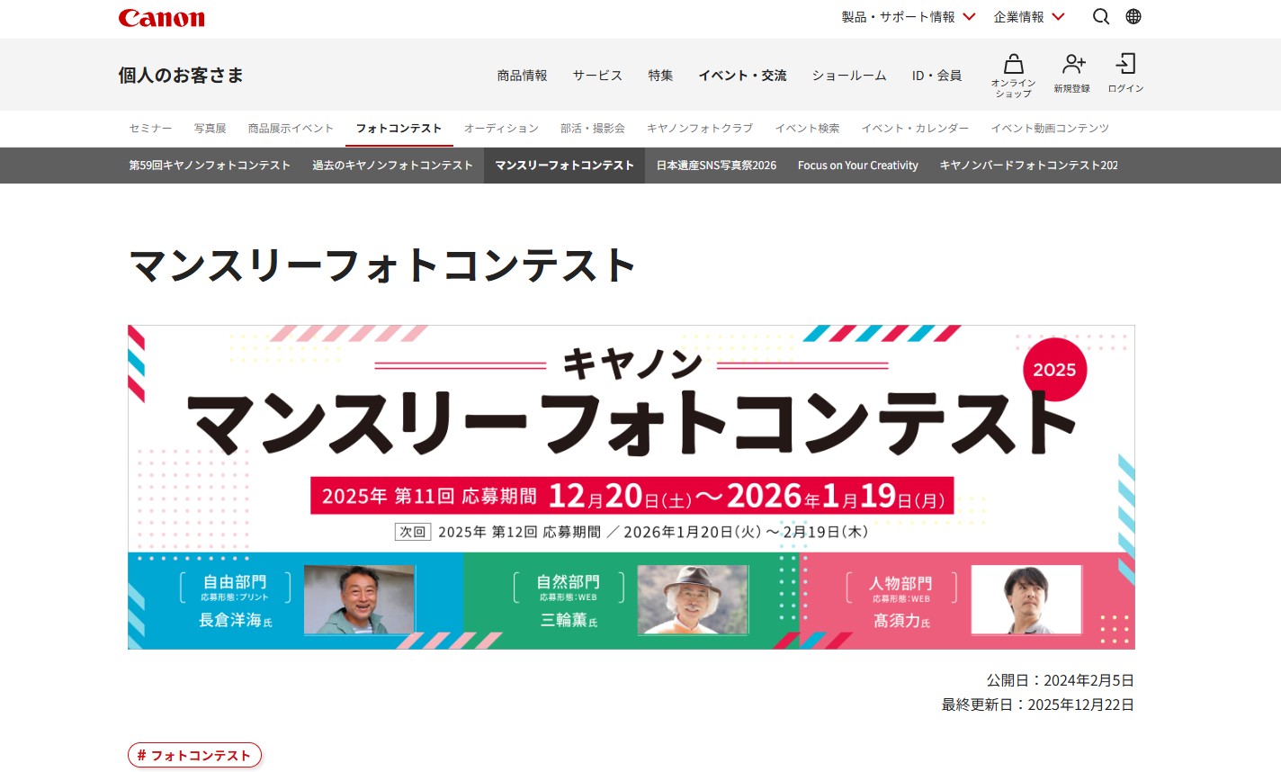 ※画像:公式サイトのキャプチャー2025年 第11回 キヤノン マンスリーフォトコンテスト