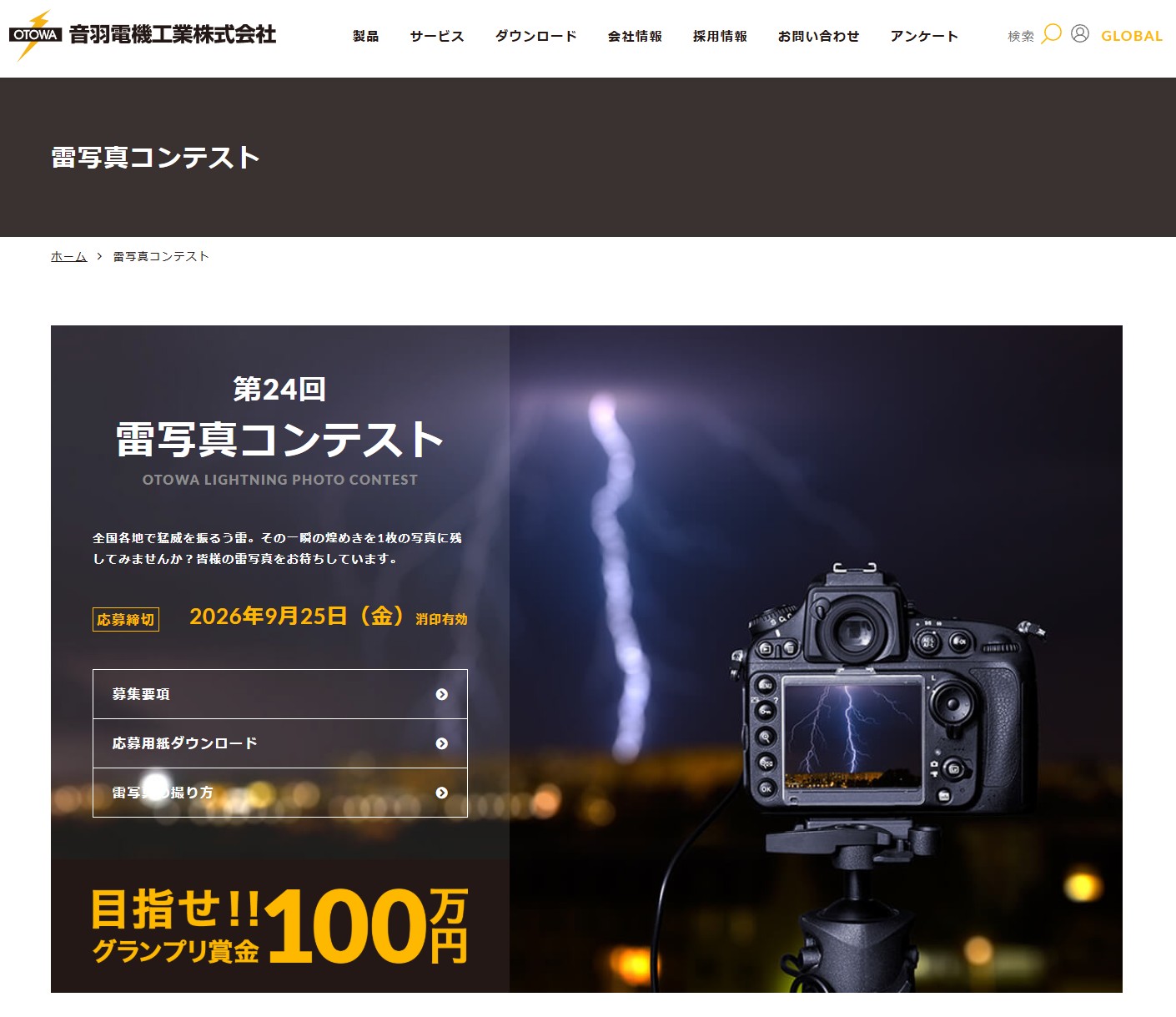 雷写真コンテストの紹介ページです。目指せ!グランプリ賞金100万円。音羽電機工業主催。全国各地で猛威...