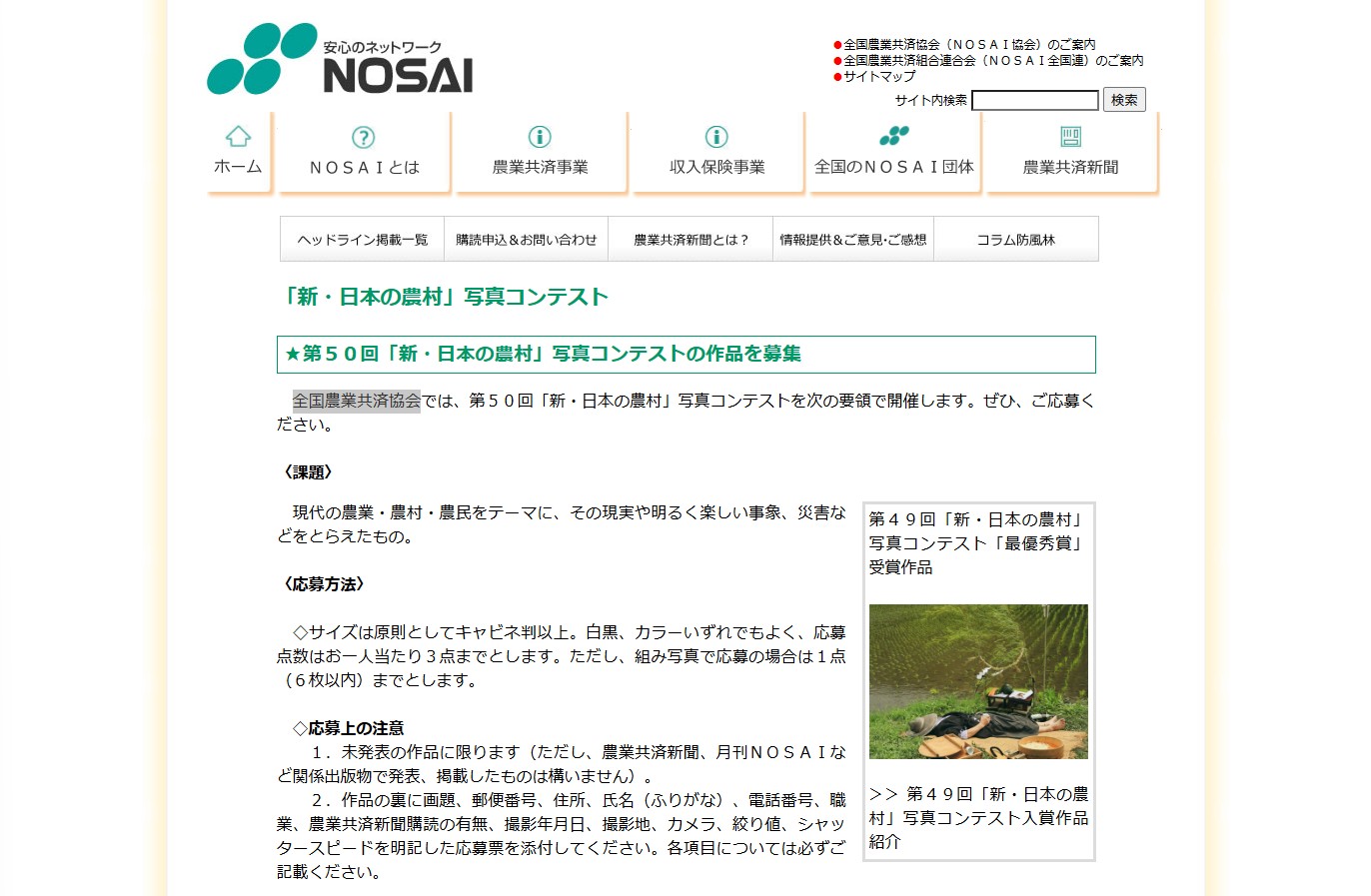 ※画像:公式サイトのキャプチャー第50回「新・日本の農村」写真コンテスト
