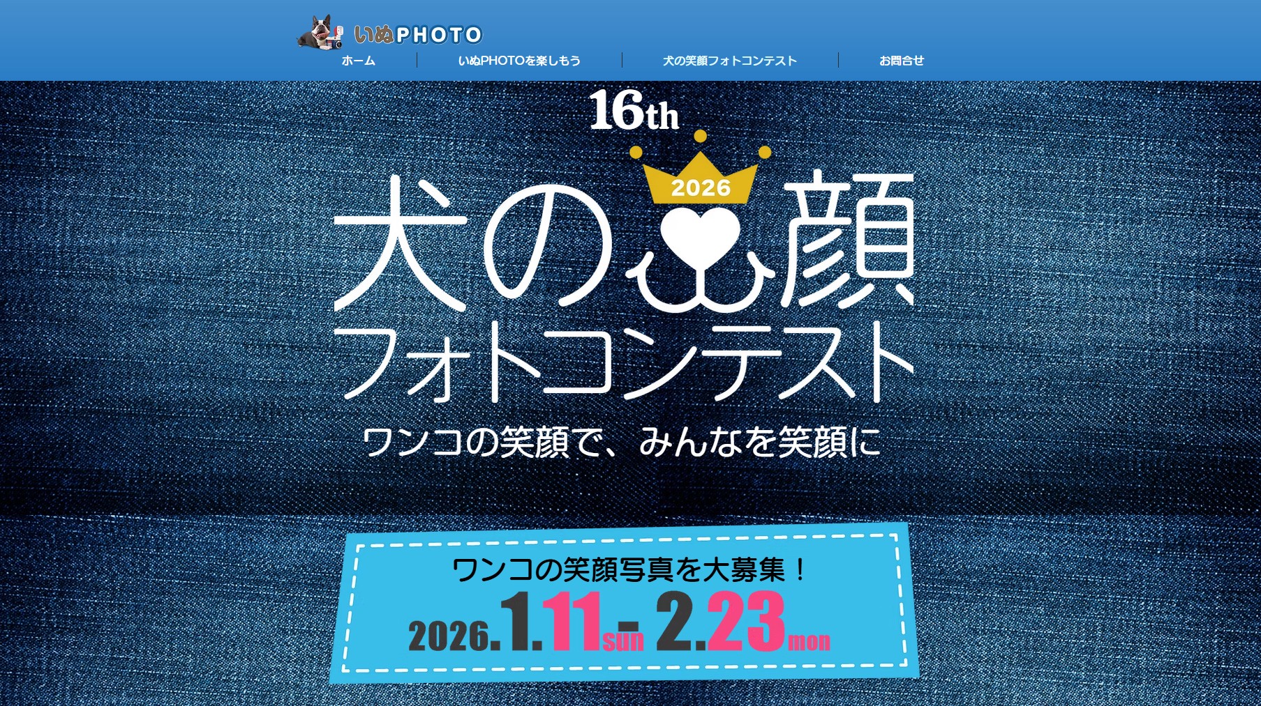 第16回 犬の笑顔フォトコンテスト 締切:2026年2月23日 主催:株式会社プライムクリエイト