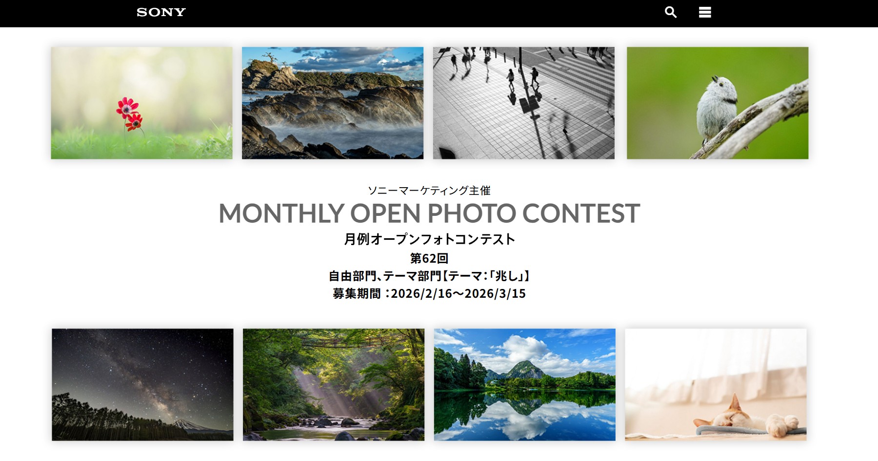 ※画像:公式サイトのキャプチャー第62回 ソニー 月例オープンフォトコンテスト