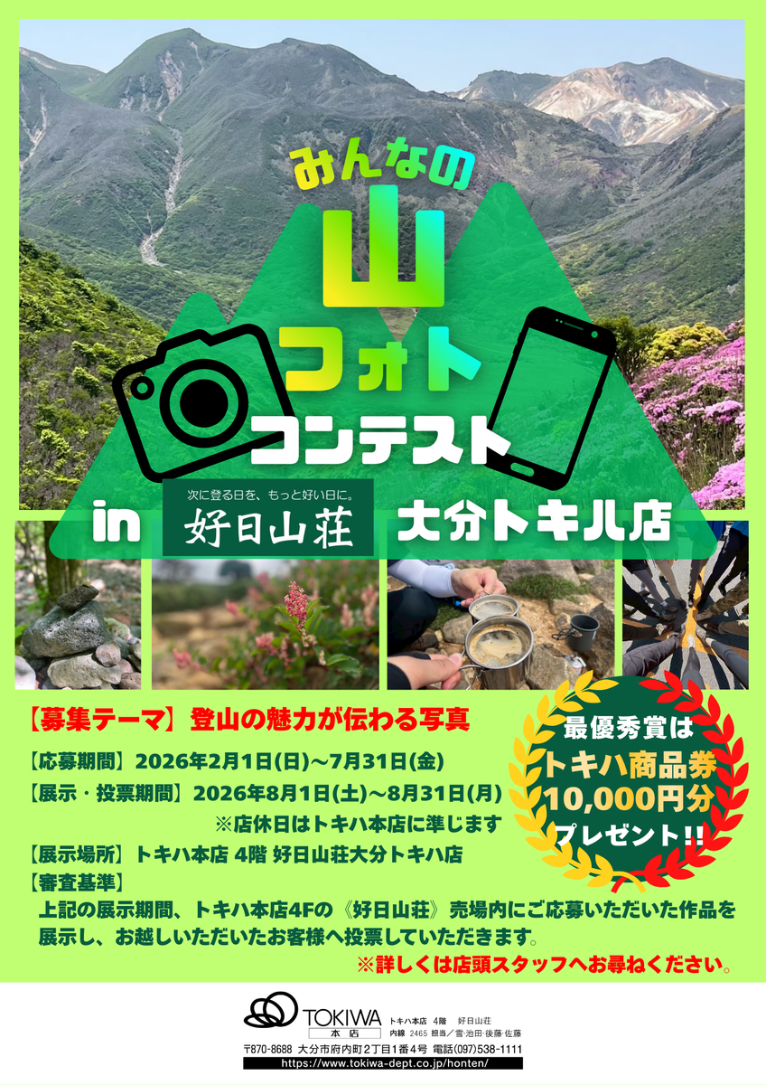 【予告】 \みんなの山フォトコンテストin好日山荘大分トキハ店/ を開催いたしま...